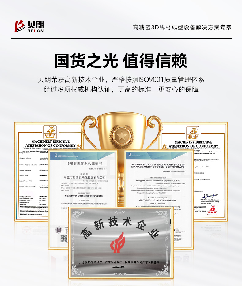 產品特點:折彎采用內外轉同步折彎,可折側彎,立彎,扭彎;切斷模組帶有預壓功能防止切口有毛刺,切口平整;設備自帶壓凸點,沖孔,壓LOGO,修披風(選配);設備自帶輔助送線裝置一人可輕松跟換材料。